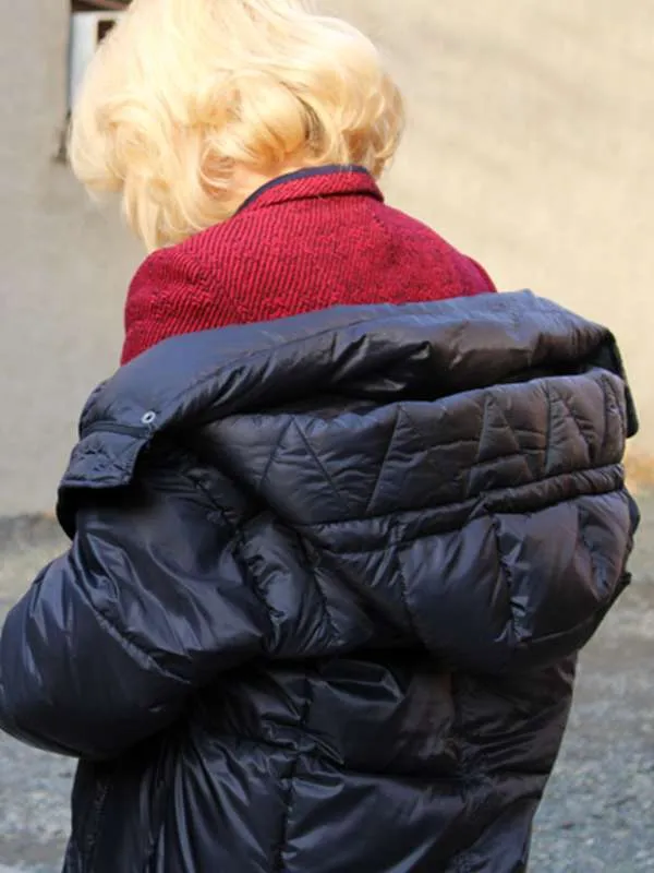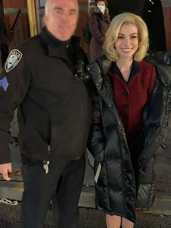 Anne Hathaway Rebecca 2023 Black Puffer Coat