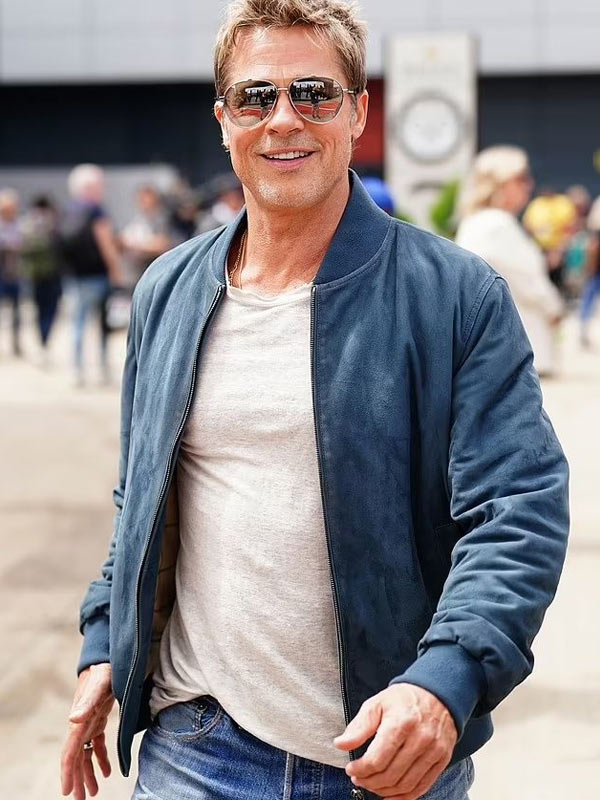 Brad Pitt F1 Blue Bomber Suede Leather Jacket