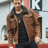 Men’s Real Brown Leather Jacket Removable Fur Collar