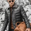 Moreover, the outfit has a distinctive stand-rib collar. Additionally, for your convenience, the outfit has multiple pockets. Two pockets are present on the front waist in addition to two inside. You can now take your essentials with you when going out. Finally, Chris Men’s Brown Leather Jacket has full-length sleeves with a rib-knitted hemline.