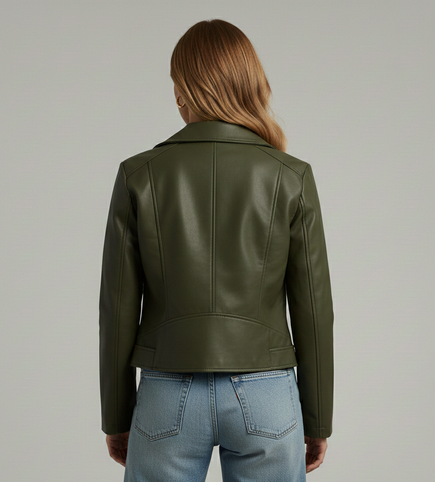 Classic Green Leather Jacket For Women