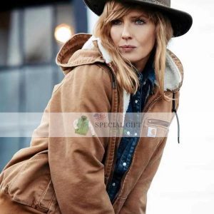Kelly Reilly Yellowstone Shearling Wool Coat