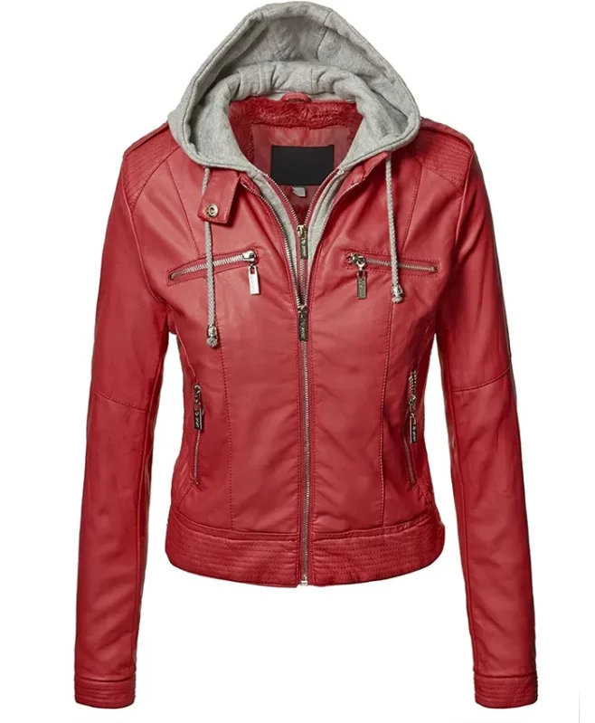 Mens and Womens Slim Fit Hooded Red Leather Jacket