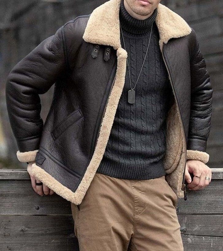 Mens B3 Sheepskin Shearling Winter Fur Coat