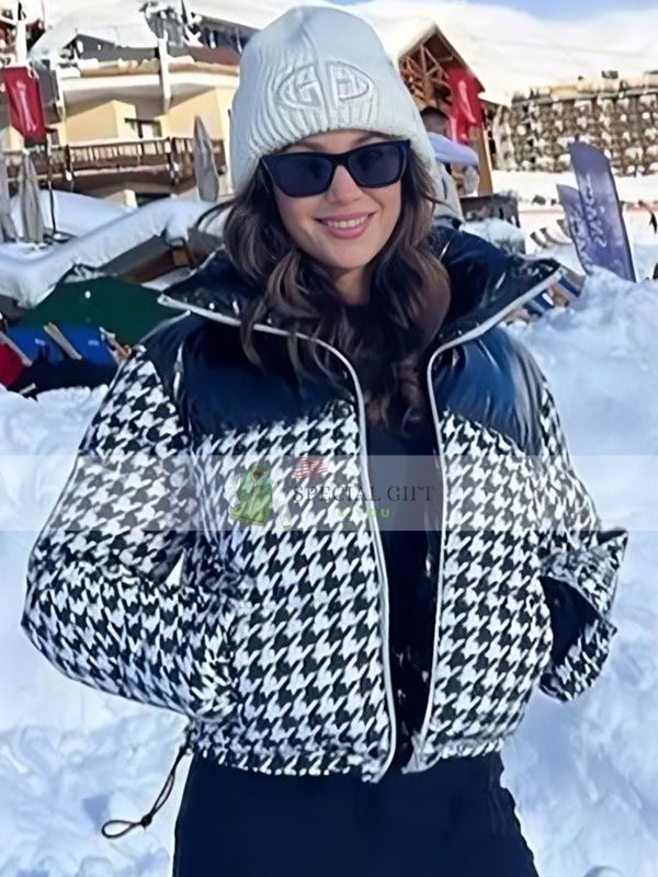 Michelle Keegan Houndstooth Black White Puffer Jacket
