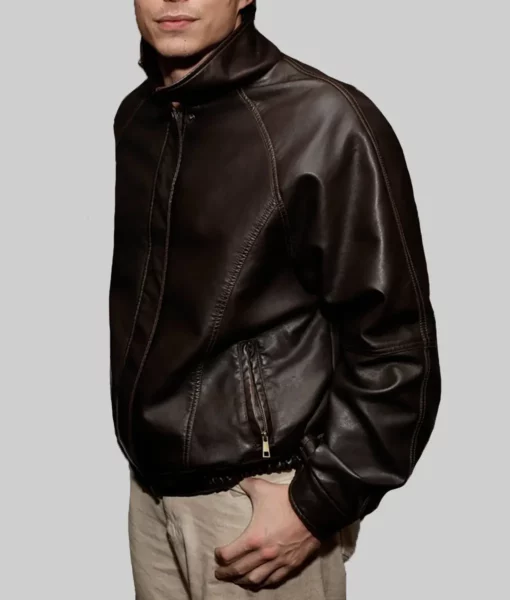 Nicholas Alexander Chavez Brown Leather Bomber Jacket