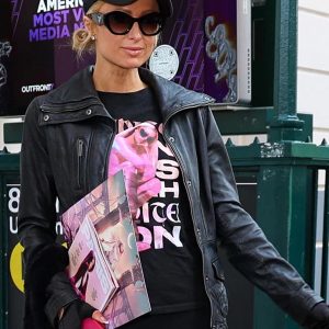 American Singer Paris Hilton Infinite Icon Black Leather Jacket